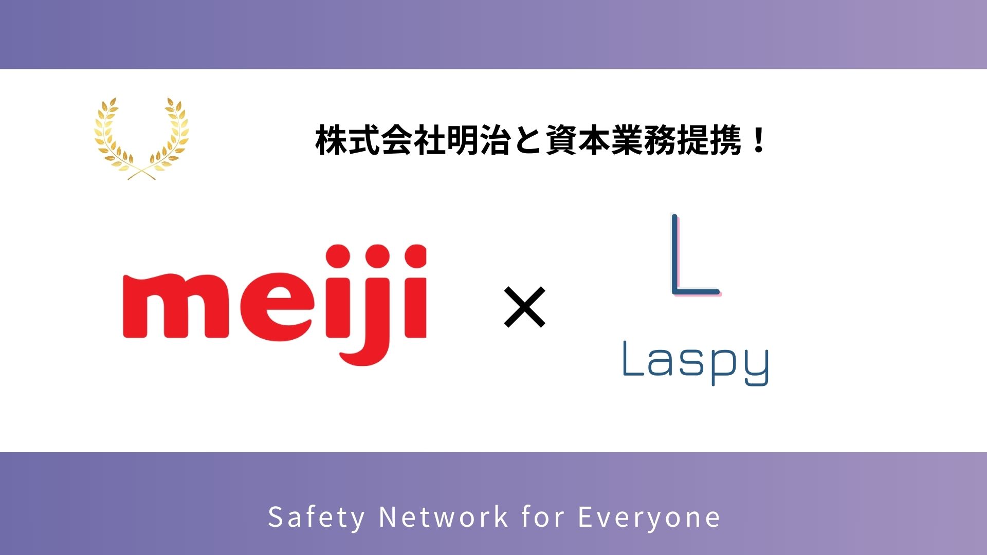 株式会社Laspy(本社:東京都中央区、代表取締役社長:薮原拓人、以下「Laspy」)は、大手食品メーカーである株式会社明治(本社:東京都千代田区、代表取締役社長:松田 克也、以下「明治」)からの出資を受け入れ、資本業務提携を開始しましたのでお知らせいたします。